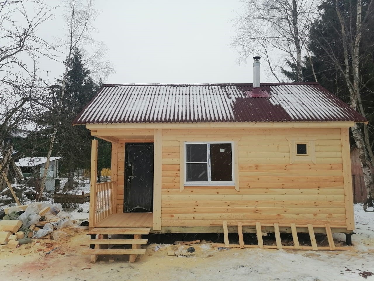 - Оборудование: Печь, дымоход, бак для воды, сантехника, освещение – все это необходимо для функционирования бани.